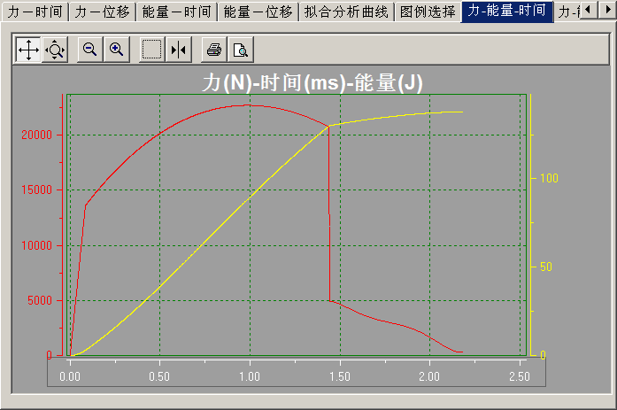 1、可直觀顯示力-時間、力-位移、能量-時間、能量-位移、力-時間-能量、力-位移-能量等6種曲線。